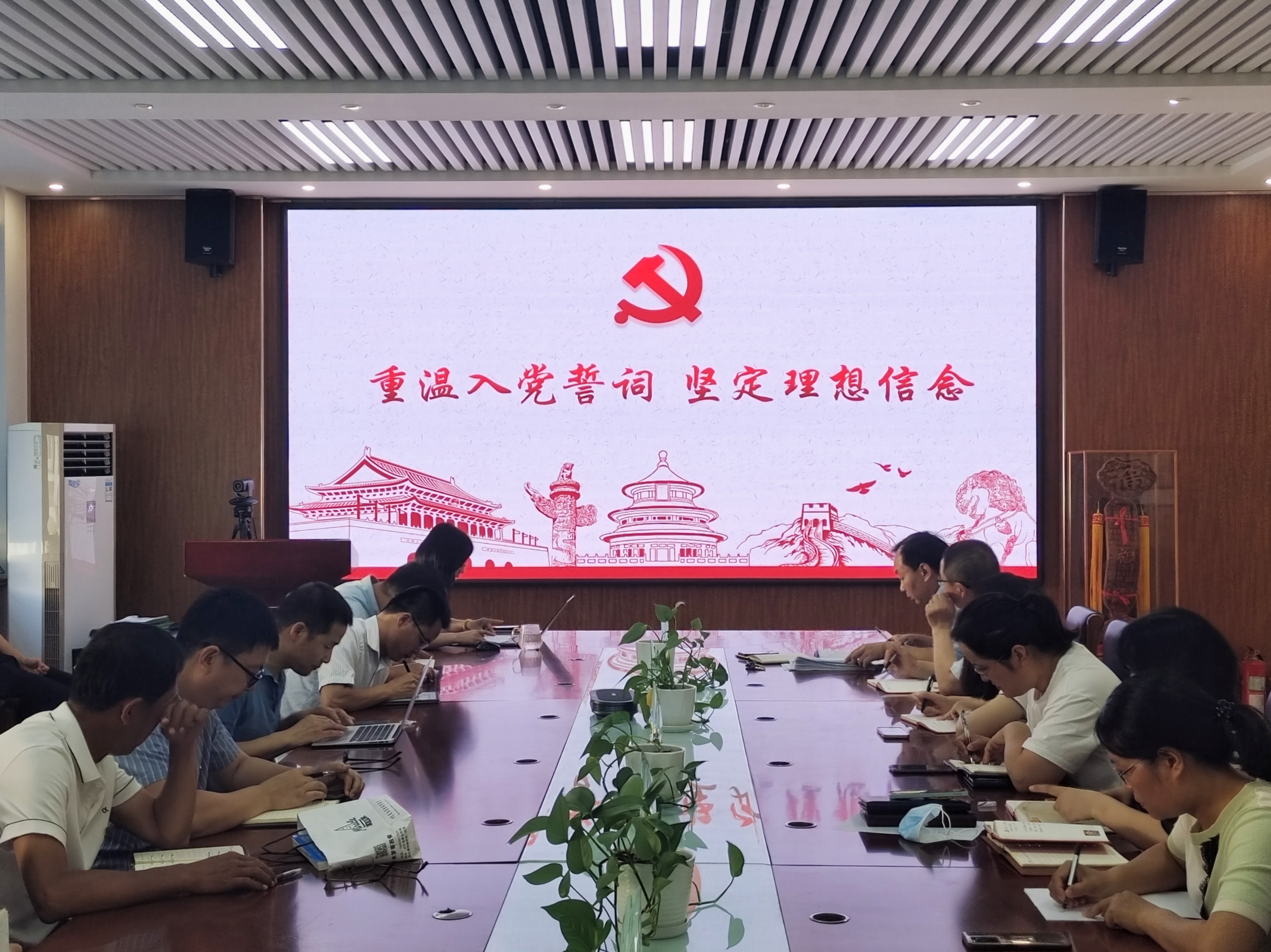 马伟萍带领与会党员现场重温了中国共产党入党誓词,一同观看了2023年高校党组织示范微党课。