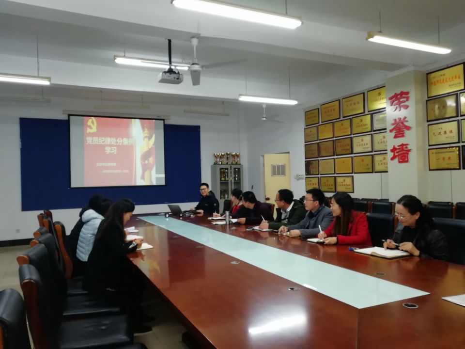 12月12日,澳门十大网投正规官网平台教工第一党支部在生物楼组织学习《中国共产党纪律处分条例》,本支部全体党员积极参加。