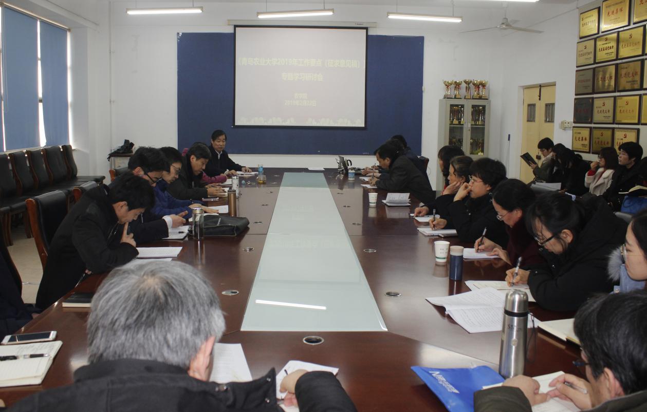 2月22日,澳门十大网投正规官网平台于生物楼N区召开《澳门十大网投正规官网平台2019年工作要点(征求意见稿)》专题学习研讨会。校党委副书记、校长宋希云出席会议,会议由学院党总支书记张玉梅主持。