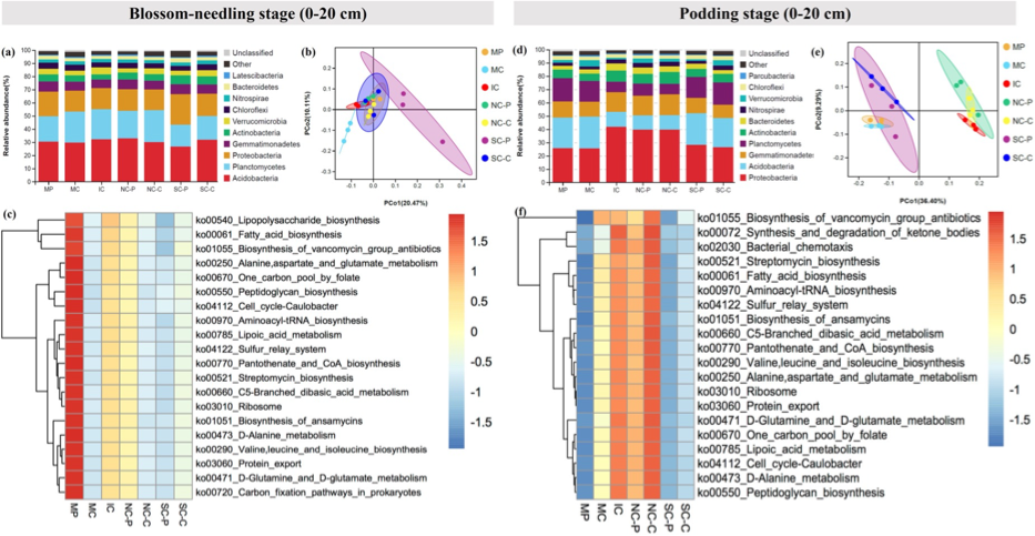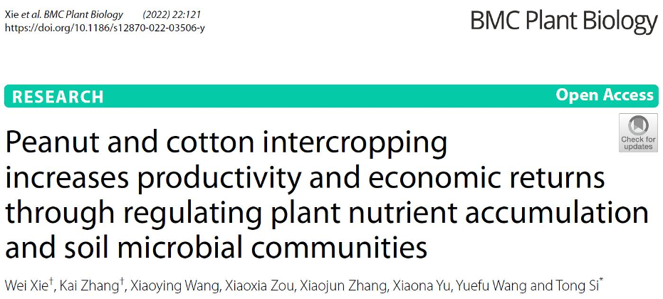 花生是山东省的主要经济作物和我国的重要出口作物。大力发展花生产业、提高花生产量品质对保障国家粮油安全、让油瓶子里多装“中国油”具有重要战略意义。课题组采用花生/棉花“等幅间作交替轮作”种植模式,并创造性地结合了大田根系分隔技术,在青岛平度(非盐碱地)、聊城高唐(次生盐碱地)和东营利津(滨海盐碱地)开展多点试验。研究表明,该种植模式能够有效提高花生和棉花植株对氮、磷、钾等营养元素的吸收和转运,改善花生棉花根际土壤微生物群落结构和多样性,大幅增加有益微生物的数量,进而显著提高间作产量和经济效益。该研究证实,花生/棉花“等幅间作交替轮作”种植模式不仅能够有效缓解花生连作障碍并发挥间作优势,而且适宜在不同类型土地种植,有效缓解盐碱胁迫,为该种植模式在我省大面积推广应用提供了理论依据和技术支撑。该研究得到国家自然科学基金、山东省现代花生产业技术体系和山东省农业良种工程项目资助。