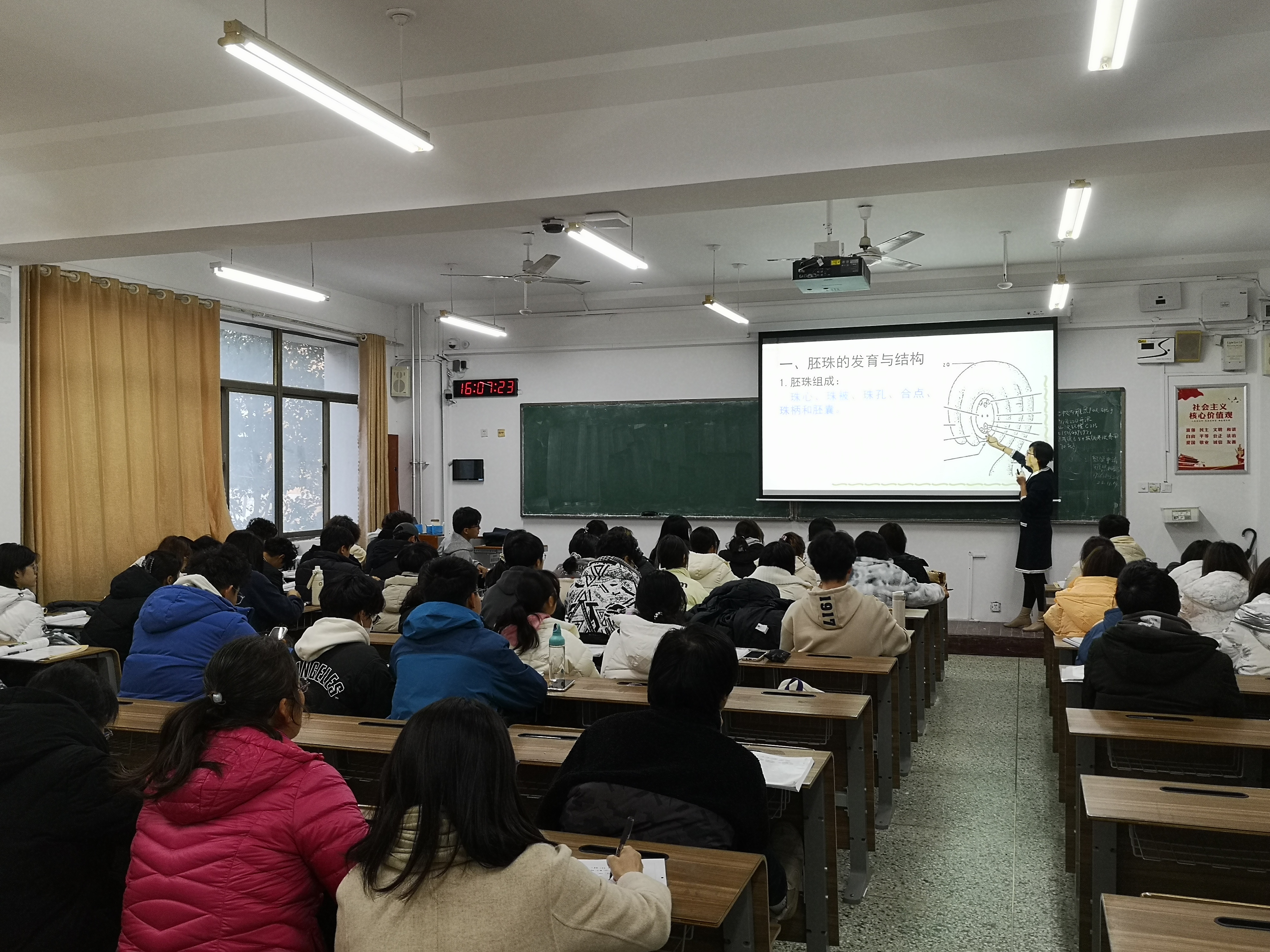 为切实提高教学质量,推动教学改革创新,11月17日,澳门十大网投正规官网平台作物遗传育种系教师团队于教学区观摩学习了生命科学学院副院长谭玲玲讲授的《植物学》课程。