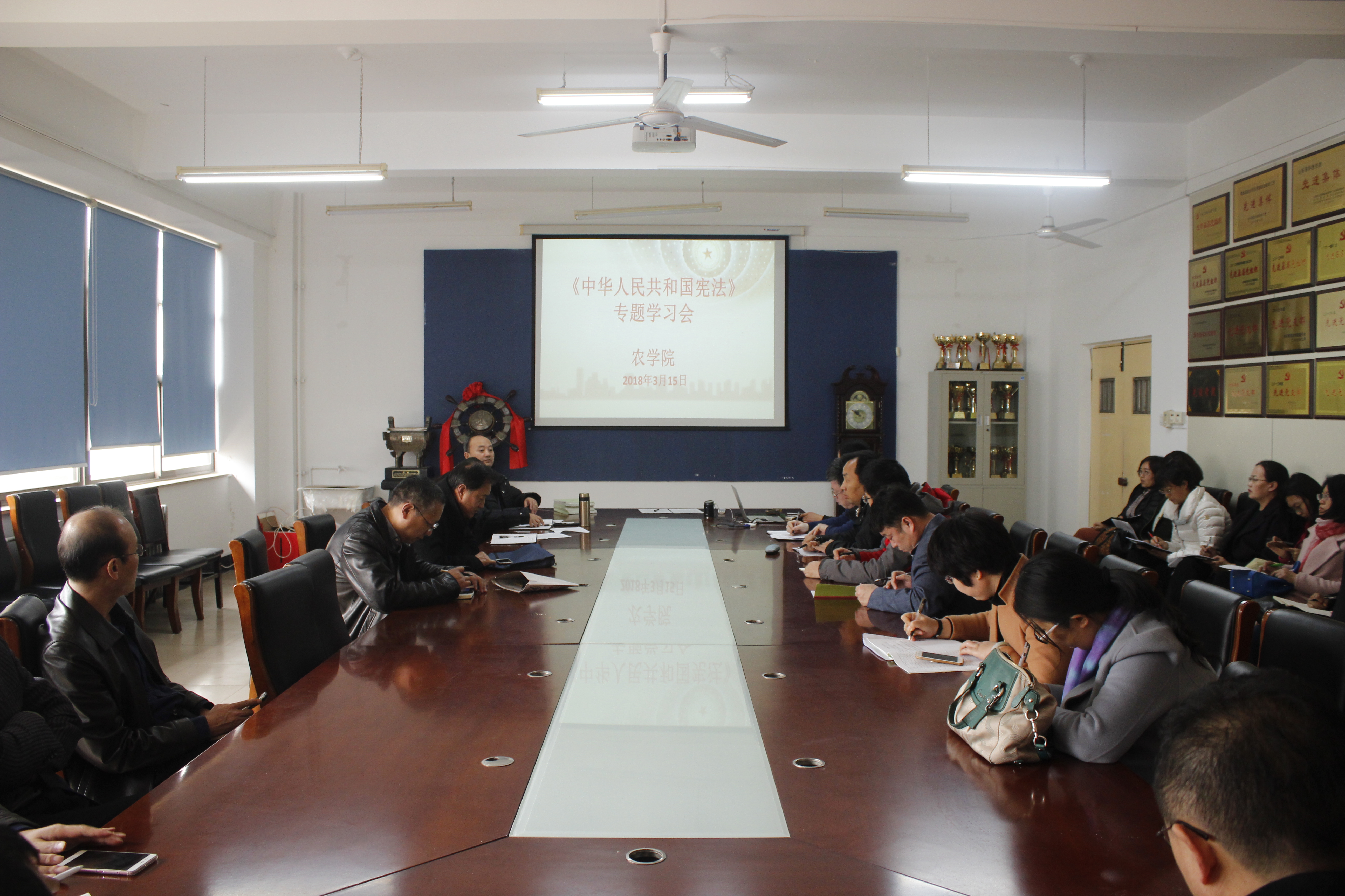为深入学习贯彻党的十九大精神,大力宣传以宪法为核心的中国特色社会主义法律体系,切实引导广大教职员工牢固树立宪法意识,增强宪法观念。3月15日,澳门十大网投正规官网平台在生物楼会议室召开《中华人民共和国宪法》专题学习会。会议由学院党总支书记张玉梅主持,澳门十大网投正规官网平台全体教职工参加。