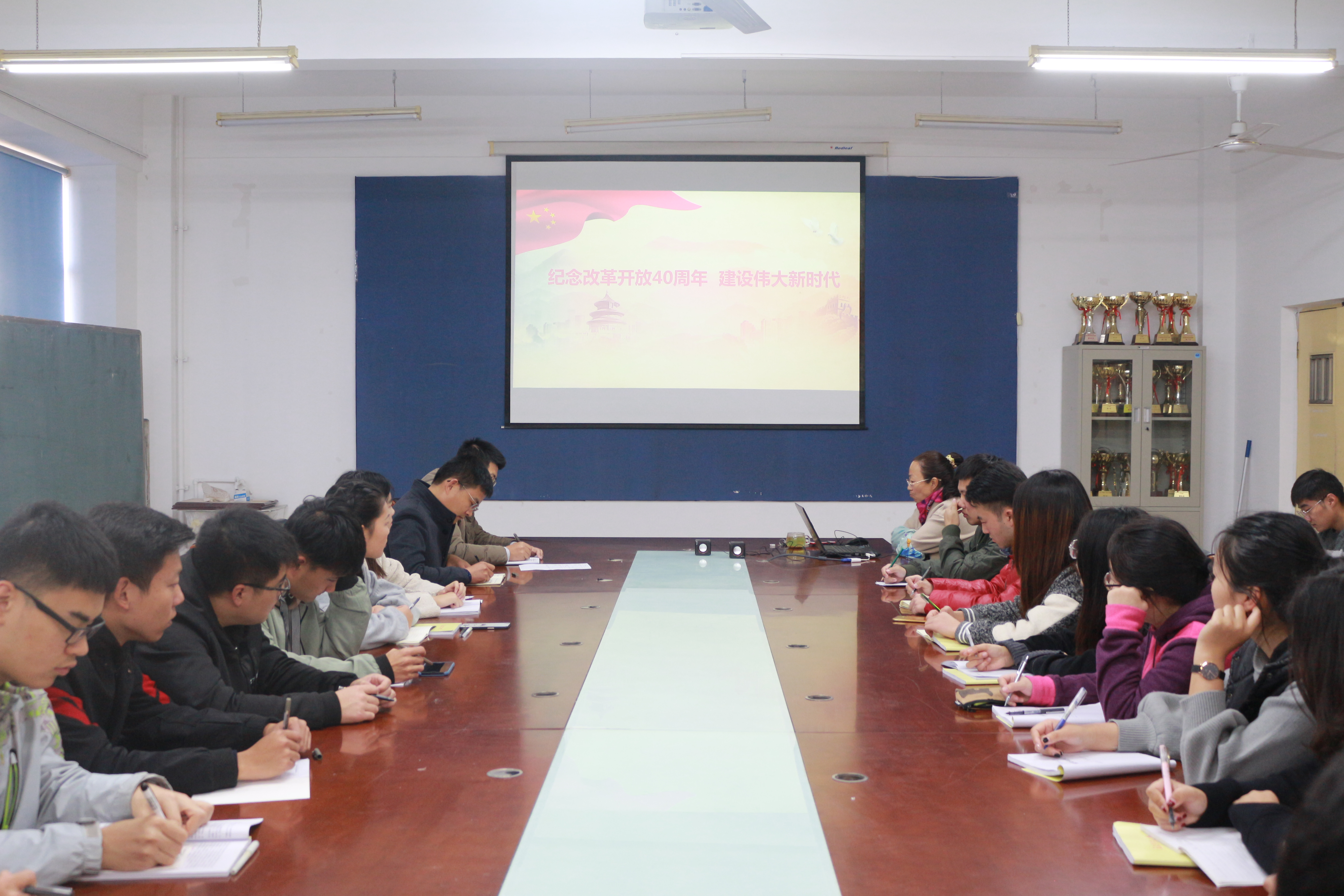 为庆祝改革开放40周年,深入学习贯彻习近平新时代中国特色社会主义思想和党的十九大精神,端正入党动机,提高党性修养,11月10日,澳门十大网投正规官网平台党总支书记张玉梅于生物楼N区为第二十三期入党积极分子和2018年下半年党员发展对象上了一堂以 “改革开放40周年,建设伟大新时代”为主题的党课,学院第三支部书记姜涛、第四支部书记谷元兴、本期入党积极分子和党员发展对象参加。