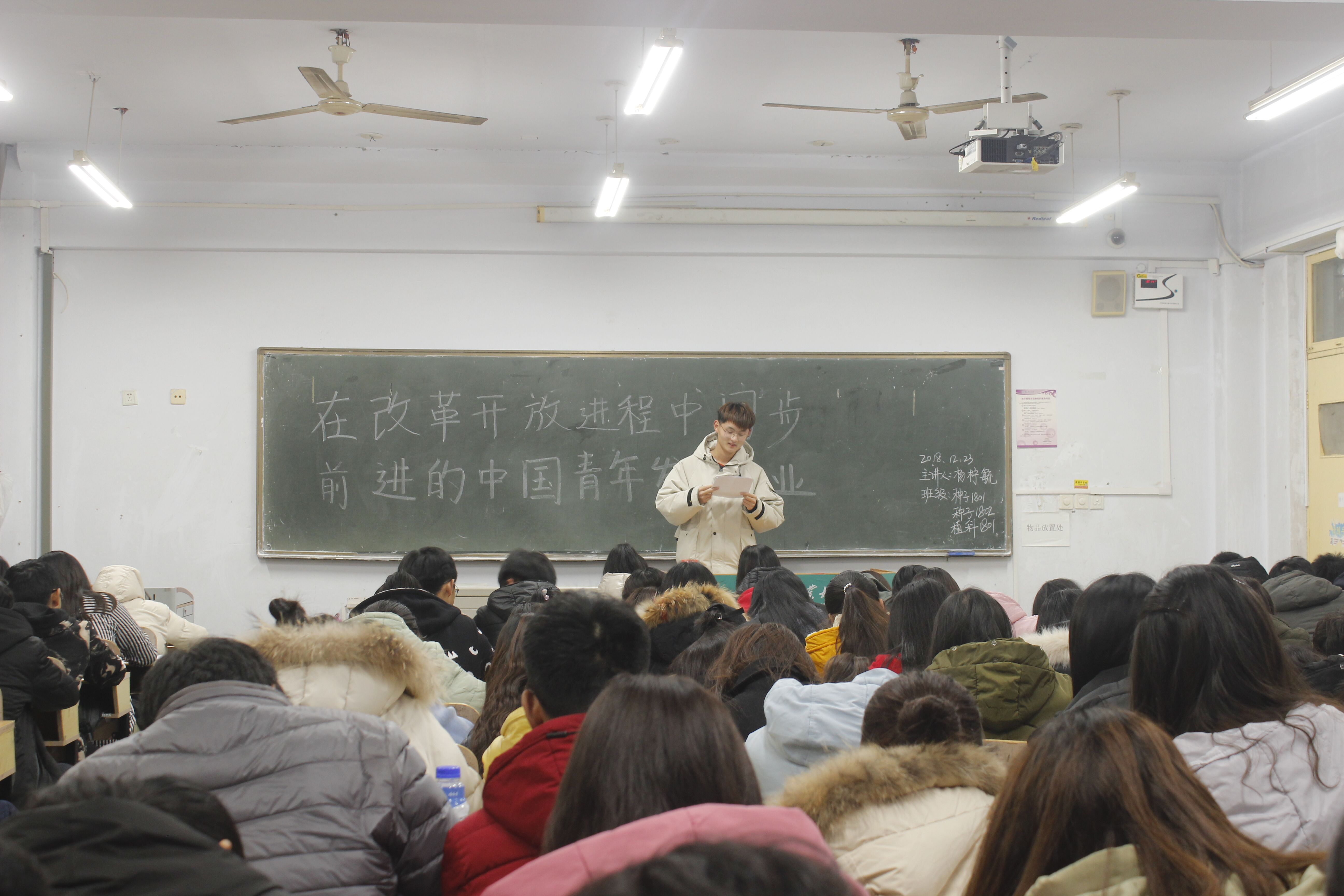 12月23日,澳门十大网投正规官网平台于教学区A区开展“在改革开放进程中阔步前进的中国青年发展事业”主题团课,旨在让学生们认识到改革开放的重要性,提高学生们投身改革开放的热情。学院2017、2018级全体同学积极参与。