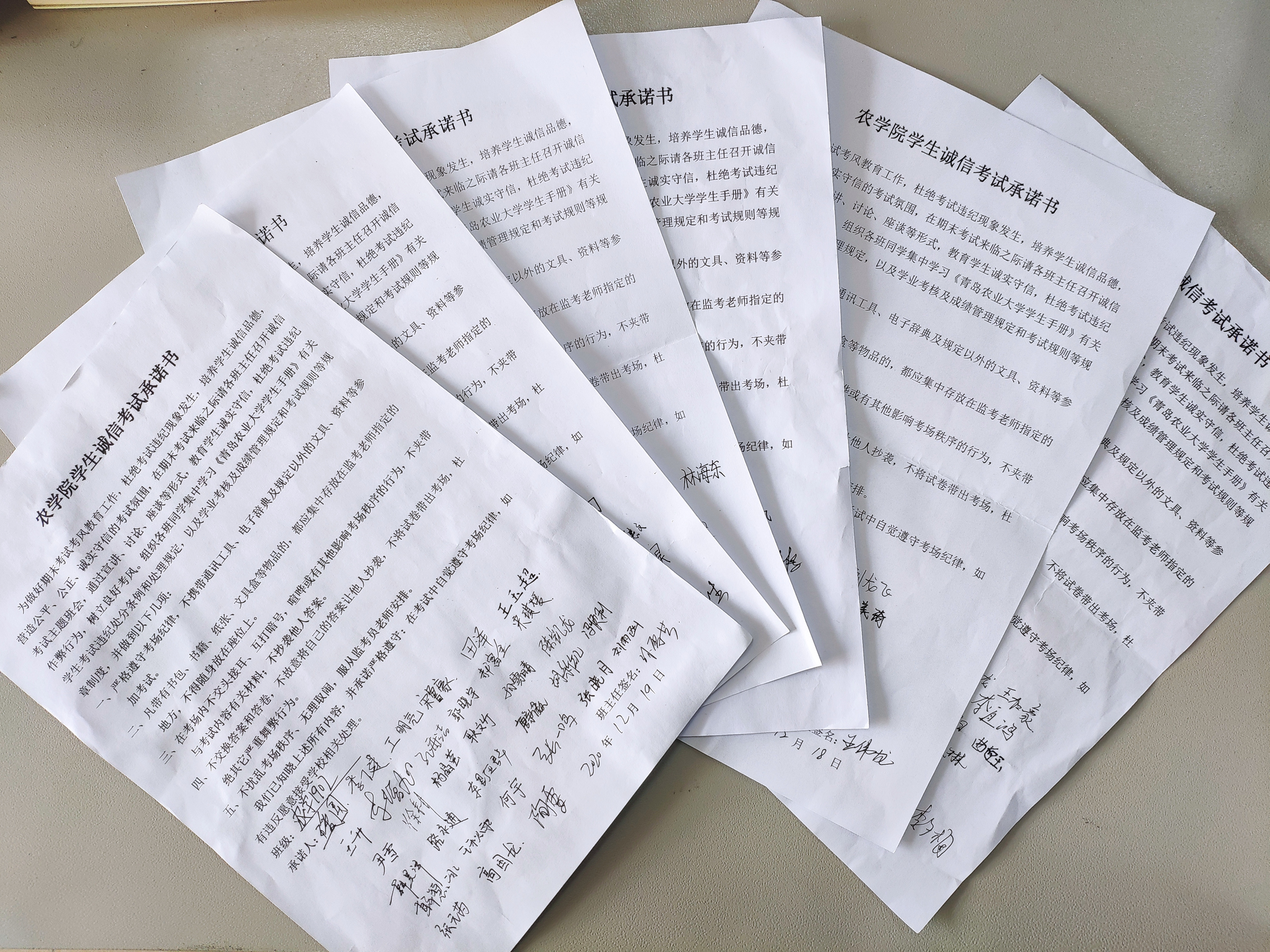 为推动学风建设,端正考风,严肃考纪,营造诚实守信考试环境。在考试周来临之际,澳门十大网投正规官网平台开展以“诚信应考”为主题的教育活动,通过签署诚信迎考承诺书、召开学生干部诚信迎考专题会议、诚信迎考主题班会等形式,提高广大同学对考试作弊严重性的认识,杜绝作弊现象发生。