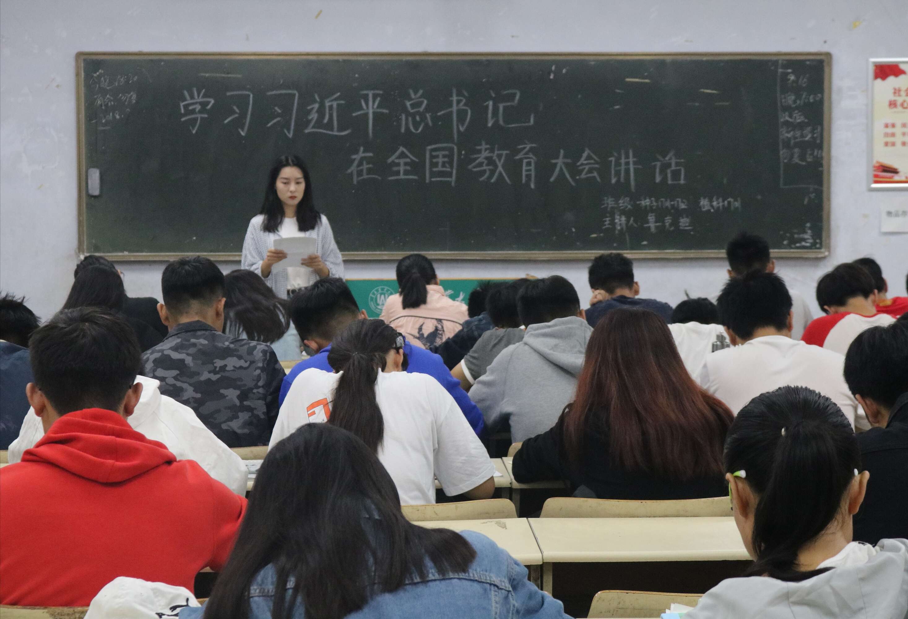 为充分学习习近平总书记的重要讲话精神,把握教育事业面临的新形势、新任务,9月16日,澳门十大网投正规官网平台在教学区开展“学习习近平总书记在全国教育大会讲话”主题团课。2017级和2018级全体同学积极参加。