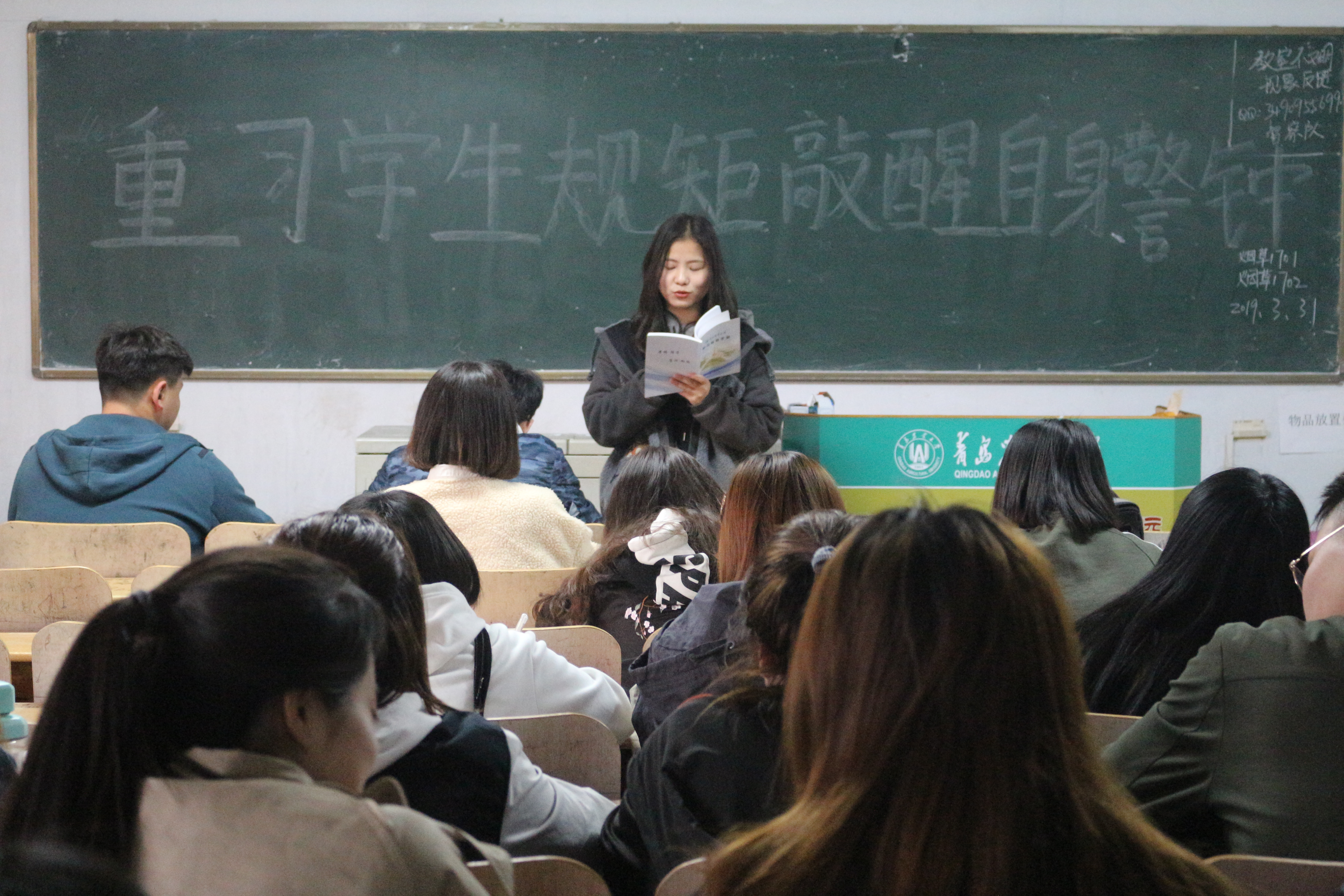 3月31日,澳门十大网投正规官网平台于教学区开展“重习学生手册,敲醒自身警钟”主题团课,旨在规范学生日常行为,进一步加强院纪和院风建设,增强我院学生学习的积极性和自主性。2017、2018级全体团员积极参加。