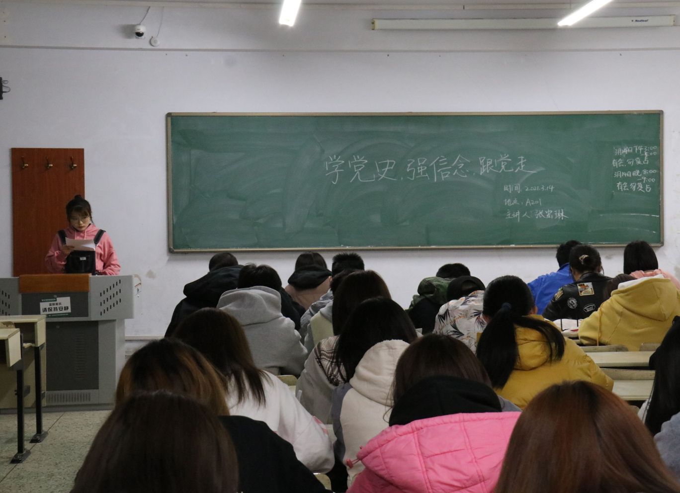 为深入贯彻学习习近平总书记在党史学习教育动员大会上的重要讲话精神,重温党史,强化同学们的理想信念,3月14日,澳门十大网投正规官网平台于教学区开展“学党史、强信念、跟党走”主题团课,澳门十大网投正规官网平台2019级、2020级全体学生参加。