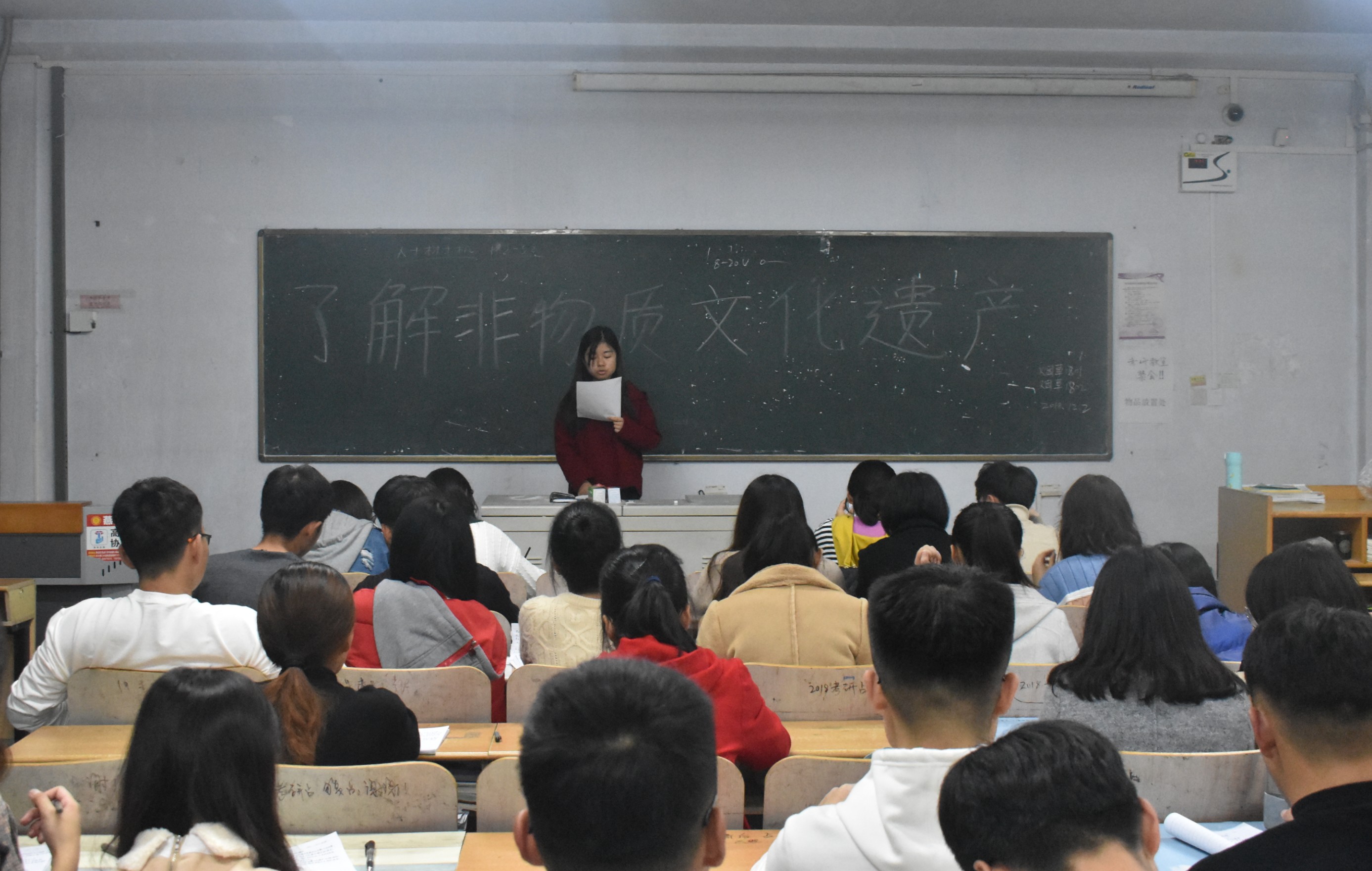 12月2日,澳门十大网投正规官网平台于教学区开展了解非物质文化遗产主题团课,旨在提高学生对非物质文化遗产的认知,并加深广大学生对中华民族非物质文化的保护意识。澳门十大网投正规官网平台2017、2018级全体同学积极参与。