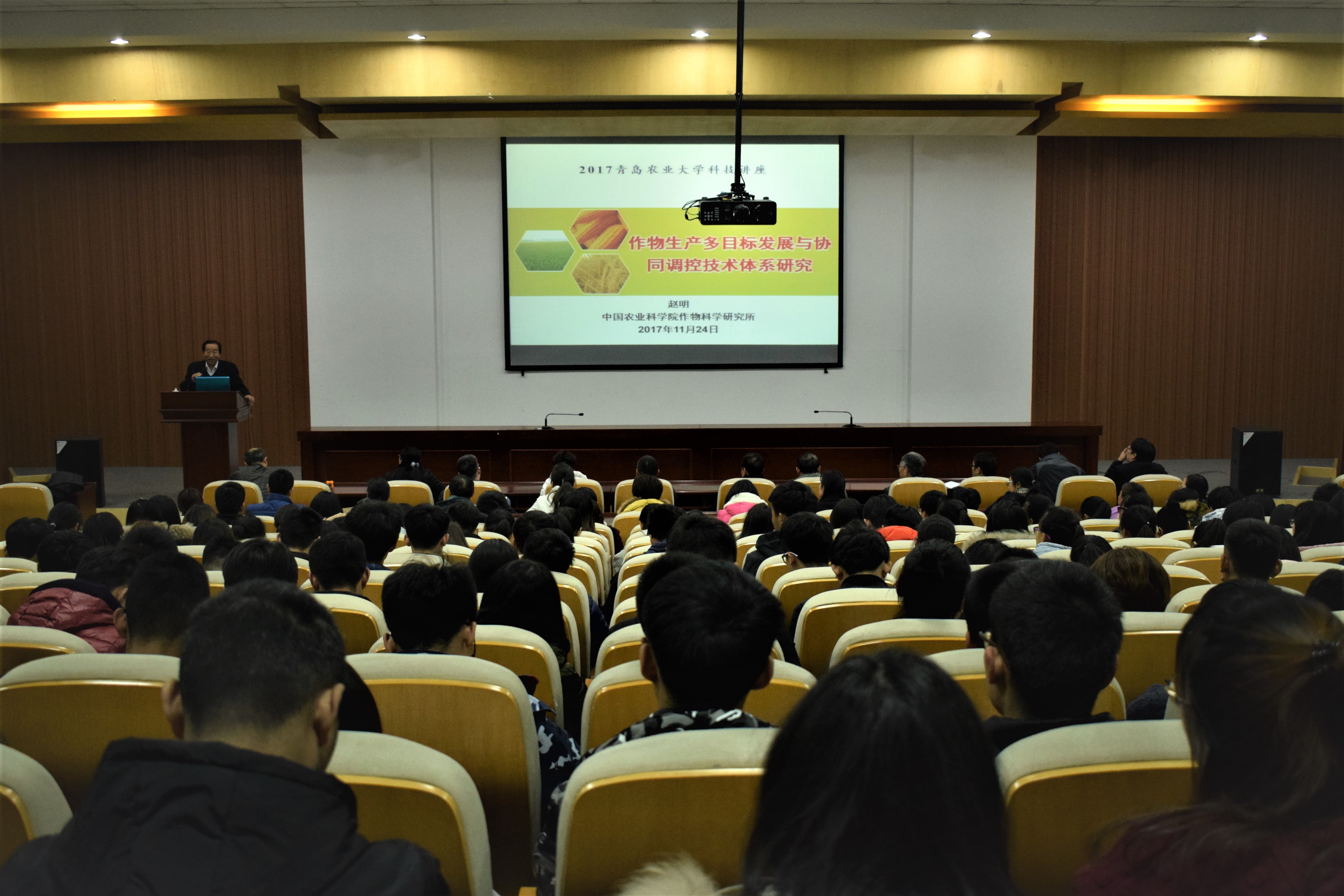 11月24日,澳门十大网投正规官网平台在学术会馆举办“金穗”学术论坛第二场报告会,邀请中国农业科学院作物科学研究所赵明教授作为主讲人,澳门十大网投正规官网平台院长刘庆昌作为主持人,全体教工、研究生及部分本科生参加。