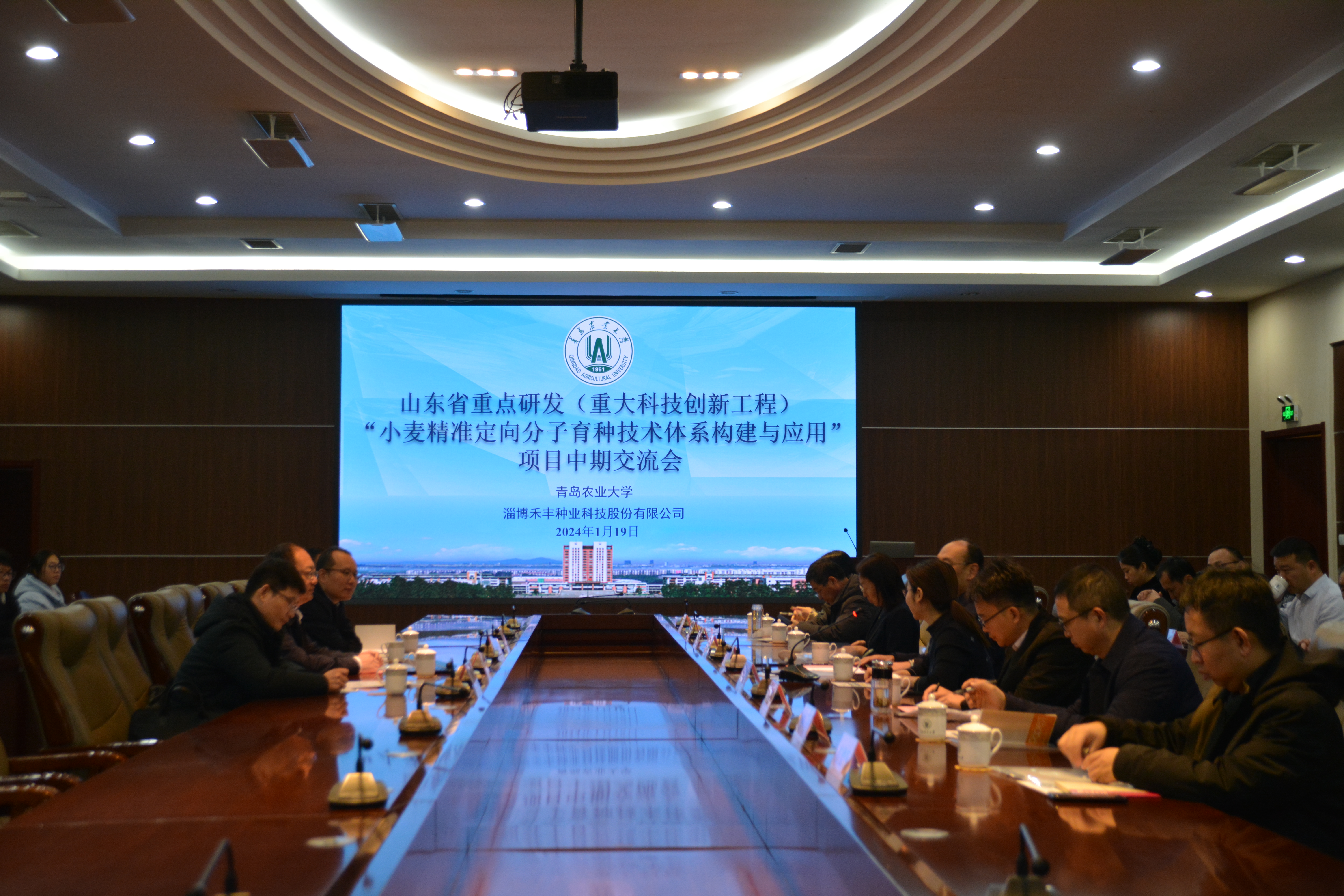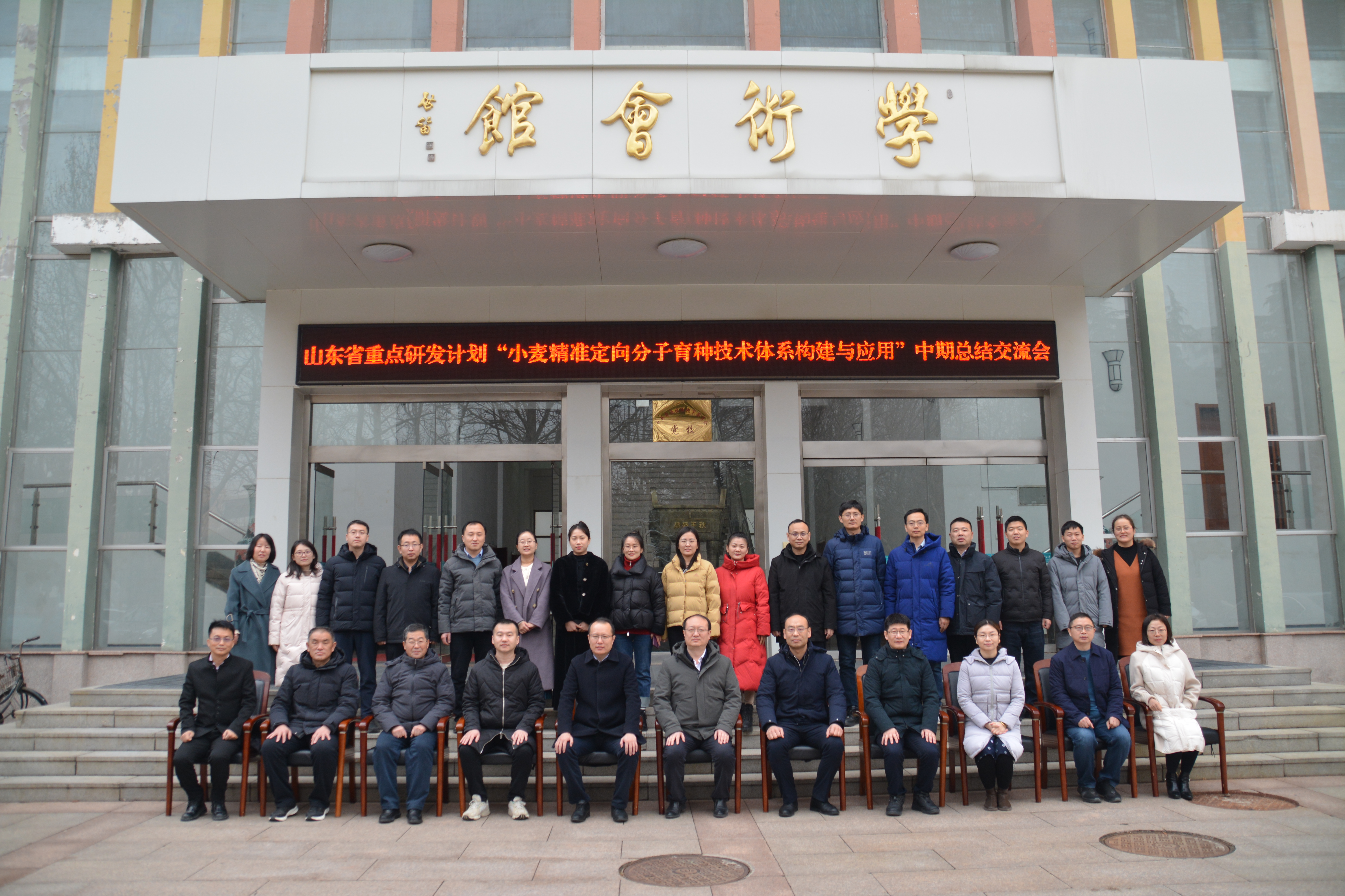1月19日,澳门十大网投正规官网平台张玉梅教授主持的山东省重点研发计划(重大科技创新工程)“小麦精准定向分子育种技术体系构建与应用”中期总结交流会在澳门十大网投正规官网平台召开。山东省科技厅农村科技处杨书平副处长、季兴龙博士,澳门十大网投正规官网平台孟晓军副校长,科技处吴薇副处长,各课题主持人及课题成员参会。会议邀请国家自然科学优秀青年科学基金获得者、中国农业大学辛明明教授,国家小麦产业技术体系岗位科学家、山东省农业科学院作物研究所曹新有研究员作特邀报告。本次会议由吴薇主持。
