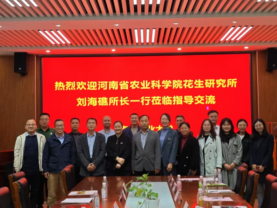 10月20日,河南省农业科学院花生研究所所长刘海礁研究员携团队成员到访我校花生创新团队。澳门十大网投正规官网平台副院长赵长星,机电工程学院农业工程系主任刘艳芬,澳门十大网投正规官网平台作物栽培与生态学系主任、国家花生产业技术体系岗位科学家邹晓霞和花生创新团队成员参加交流研讨会。会议由邹晓霞主持。