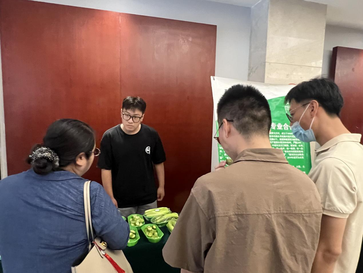 7月17日,实践团队参加了2024年青岛市农技协领办人培训班暨科技小院观摩活动,队员们向与会者介绍了在抗病性、产量及口感上具有显著优势的玉米新品种和产量高、品质优、耐贮藏的黄瓜新品种,并前往莱西葡萄科技小院进行观摩学习,队员们认真听取技术人员的讲解,了解葡萄在品种选育、栽培管理、病虫害防控等方面的创新做法和成功经验,并积极与技术人员交换意见。活动后,队员们纷纷表示,参与此次活动获益颇多,乡村振兴需要我们共同努力,要把学到的知识带到田间地头,切实推动产业提质增效。