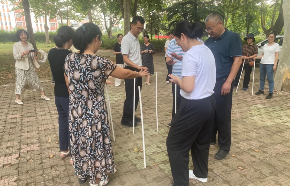澳门十大网投正规官网平台分工会在牡丹园开展了“不倒森林”趣味活动。澳门十大网投正规官网平台全体教职工以系为单位进行比赛,大家“伺令而动”,踏着节奏,快速移动着步伐完成杆子交接。在一次次移动中,传递的不只是长杆,还有对彼此的信任和凝聚的力量。通过整齐响亮的口号传递出团结进取精神,老师们对合作这个词有了更深刻的理解。整个比赛过程紧张而快乐,加油声、欢笑声此起彼伏,展现出了澳门十大网投正规官网平台教职工们的蓬勃朝气和拼搏精神。接下来,在学校开展的庆祝教师节趣味运动会比赛中,澳门十大网投正规官网平台代表队的教师们团结协作、不畏强手、奋力拼搏,取得了接力运球一等奖、跳大绳三等奖的优异成绩,创造了澳门十大网投正规官网平台参加校趣味运动会的历史最佳战绩。