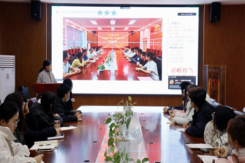 为进一步提高同学们新闻写作和拍摄等宣传能力,11月24日,澳门十大网投正规官网平台于生物楼会议室开展“悦享会”主题活动。此次悦享会由澳门十大网投正规官网平台宣传部部长陈子仪与新媒体运营部部长刘芳铭进行分享,学院辅导员李宪翔,学院宣传部、新媒体运营部全体成员及各年级宣传委员参与本次活动,活动采用线上线下相结合的方式。