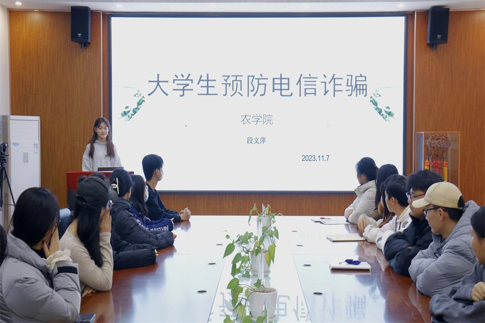 为提高学生的防范意识,增强学生的自我保护能力,11月7日,澳门十大网投正规官网平台于生物楼开展大学生预防电信诈骗宣讲会。本次宣讲会由澳门十大网投正规官网平台权益部兼1资助管理部部长段文萍主讲,学院学生会成员参加。