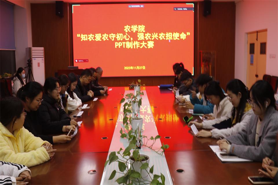 为深入学习习近平总书记给中国农业大学科技小院的学生重要回信精神,11月27日,澳门十大网投正规官网平台于生物楼会议室开展“知农爱农守初心 强农兴农担使命”PPT制作大赛。澳门十大网投正规官网平台党委副书记、副院长孙占伟,团委书记石勇,辅导员李宪翔出席本次活动,学生会及学生服务发展中心代表及参赛选手参加。此次活动由澳门十大网投正规官网平台学生会陈子仪主持。活动采用线上线下相结合的方式。