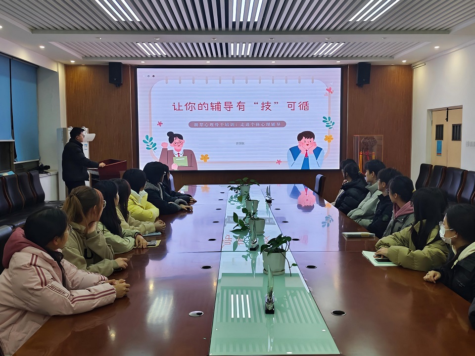 为增强学生心理骨干开展心理辅导工作能力,11月30日,澳门十大网投正规官网平台开展“朋辈心理骨干培训:走进个体心理辅导”专题讲座。此次讲座由澳门十大网投正规官网平台心理发展部部长王晓霖主讲,澳门十大网投正规官网平台本科生、研究生各班心理委员参加。