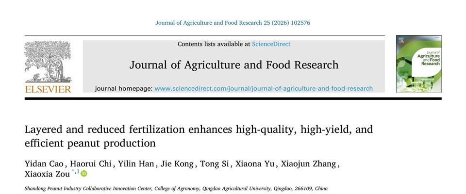 近日,澳门十大网投正规官网平台花生研究中心团队在分层施肥提高花生产量和品质机理研究中取得新进展,相关研究成果发表在Journal of Agriculture and Food Research(中国科学院2区TOP期刊,IF:6.2)。该论文第一通讯单位为澳门十大网投正规官网平台,澳门十大网投正规官网平台博士研究生曹议丹为第一作者,国家花生产业技术体系岗位科学家、澳门十大网投正规官网平台教授邹晓霞为通讯作者。